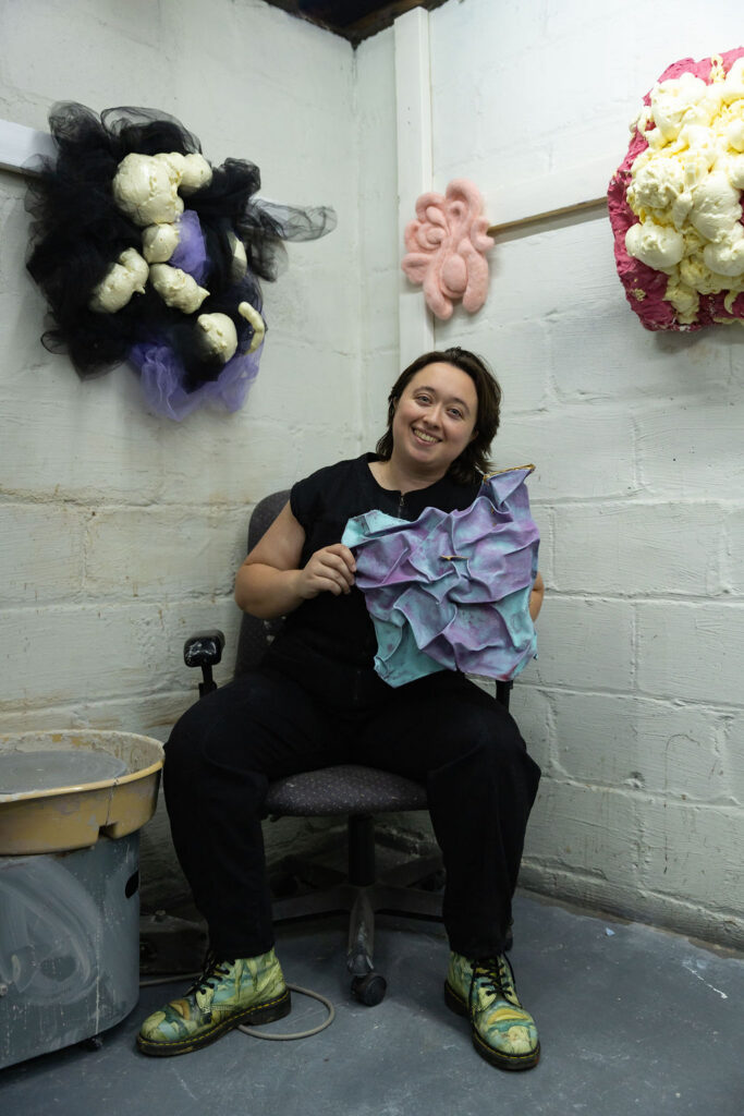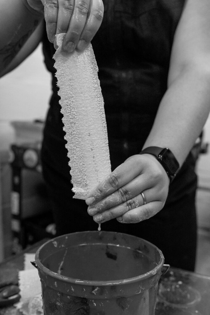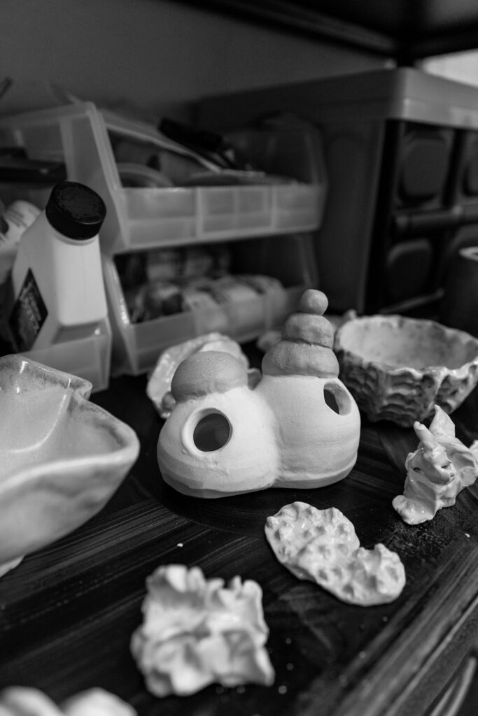As a ceramicist and abstract sculptor, my work is driven by a deep curiosity for unconventional, discarded, and found materials. My artistic practice is guided by the idea of exploring the possibilities of forcing, stuffing, stretching, and fitting these materials in ways that challenge my own body’s abilities and the laws of gravity. In my studio, finding the limits of specific materials is a constant struggle that pushes me to think creatively and explore the boundaries of what is possible.
