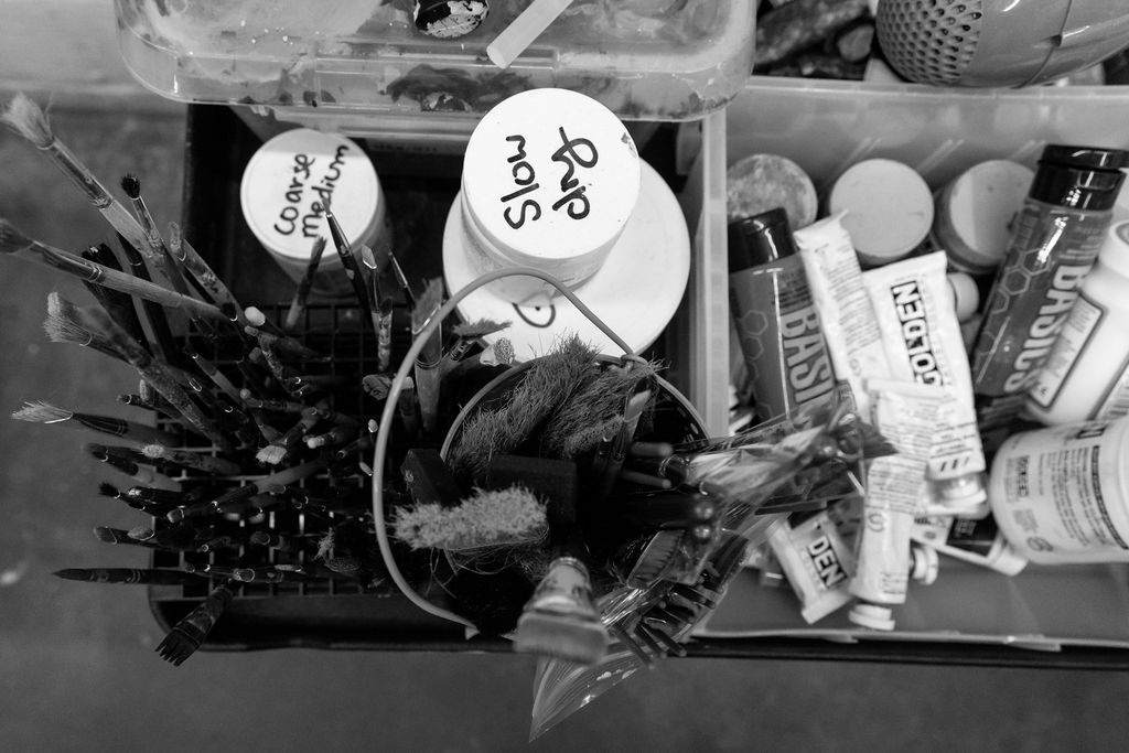 London Heist responded to one of my “Dream Sessions” posts, where I toss out a few session ideas that I offer for a discounted rate to get out of my brain and actualize. For this dream session, I wanted to witness an artist in their space, where they create, showing off their mediums.